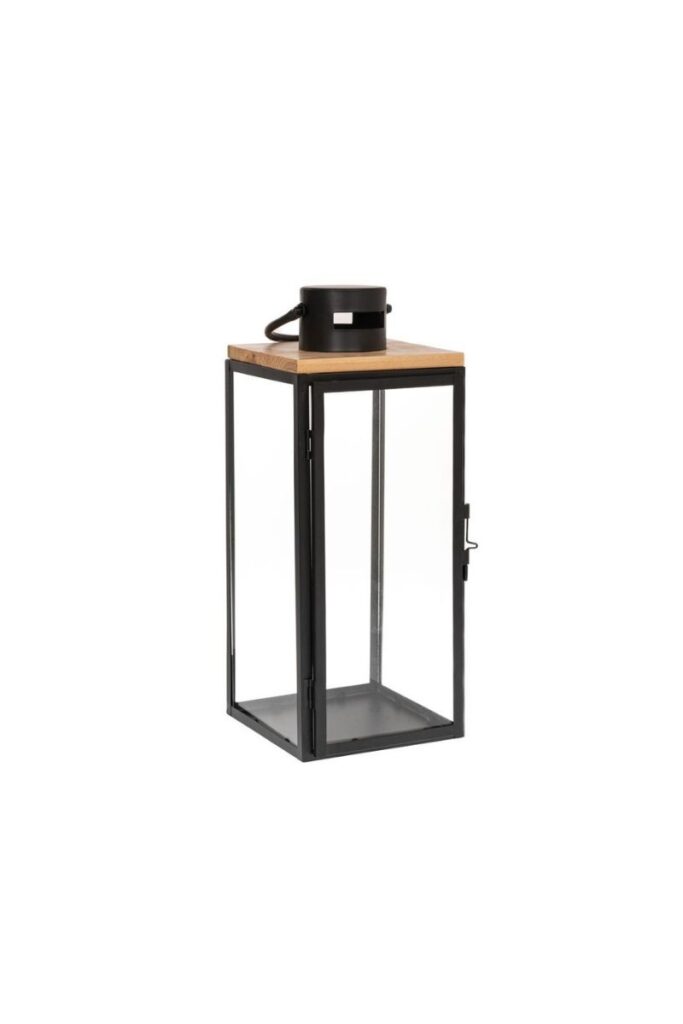 ΜΑΥΡΟ ΜΕΤΑΛΛΙΚΟ ΦΑΝΑΡΙ ΜΕ ΞΥΛΙΝΗ ΟΡΟΦΗ 17Χ16Χ40ΕΚ
