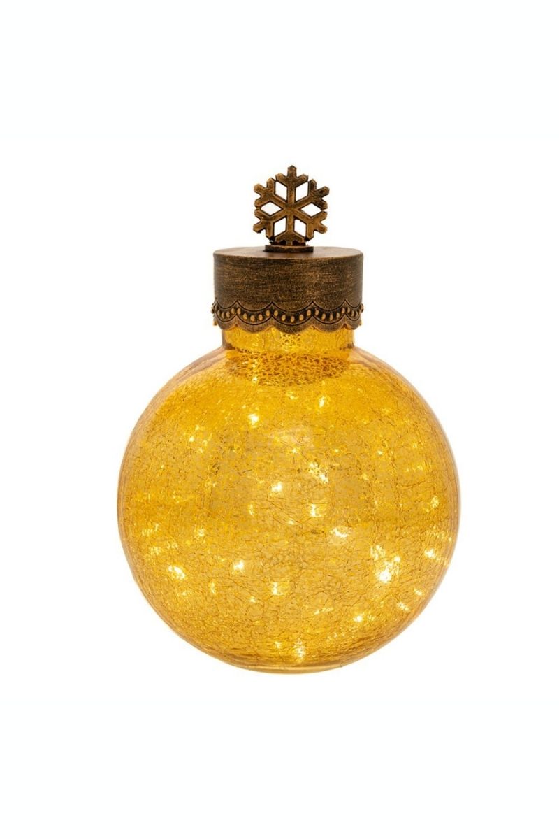 Μπάλα γυάλινη χρυσή αντικέ φωτιζόμενη με χιονονιφάδα μπαταρίας 20Χ31εκ.