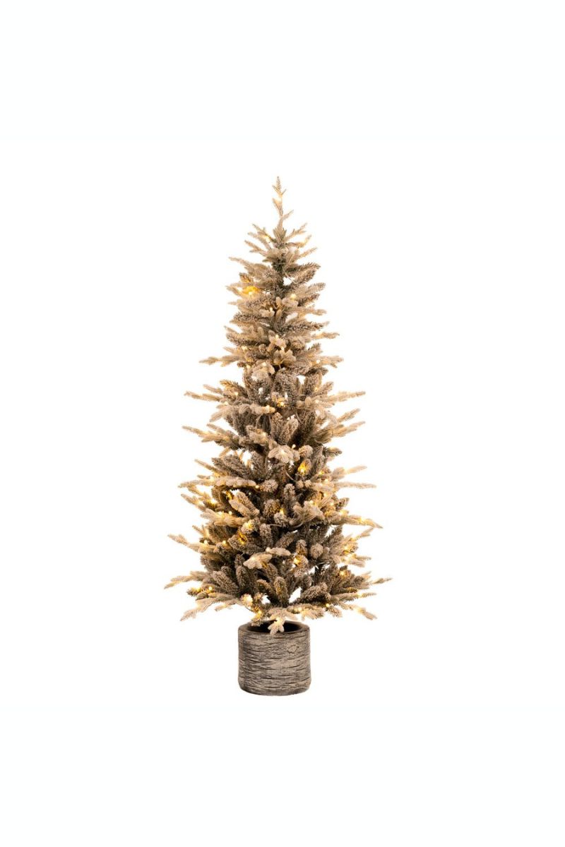 Χιονισμένο δένδρο “PRE LIT ICELAND POTTED FIR”, με ενσωματωμένα 100 led λαμπάκια λευκά ή πολύχρωμα, σταθερά ή αναβοσβήνουν με 10 προγράμματα λειτουργίας. Το ύψος του είναι 150εκ και η διάμετρος της βάσης 65εκ. Διαθέτει 729 tips και είναι τοποθετημένο σε fiberglass κασπώ. Το μήκος του καλωδίου είναι στα 5 μέτρα. Έχει εύκολη συναρμολόγηση τύπου ομπρέλα. Πρόκειται για την ανώτατη ποιότητα δένδρου που εύκολα θα στολίσει τον χώρο σας και θα εντυπωσιάζει για πολλά χρόνια .
