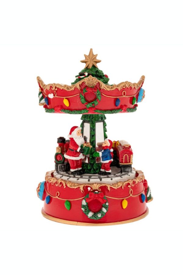 Χριστουγεννιάτικο φωτιζόμενο σκηνικό με Άγιο Βασίλη που κινείται μέσα σε έλκηθρο μπροστά από ένα φωτιζόμενο σπίτι. Λειτουργεί με 3 μπαταρίες ΑΑ οι οποίες δεν περιέχονται. Υλικό κατασκευής πολυρεζίνη και πλαστικό. Πολύ καλή απεικόνιση και ποιότητα κατασκευής. Τo προιόν μπορεί να έχει μικρές χρωματικές διαφορές απο την φωτογραφία + ΜΟΥΣΙΚΗ.