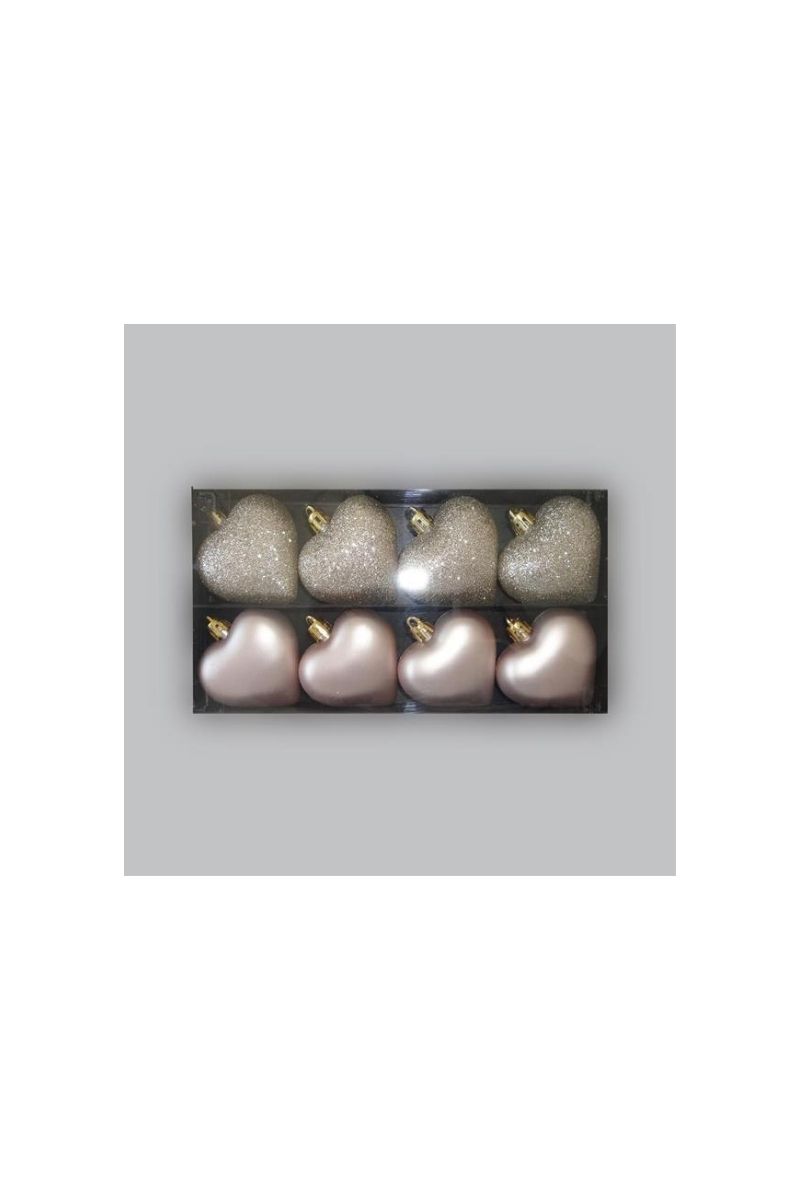 ΚΑΡΔΙΕΣ ΠΛΑΣΤΙΚΕΣ, ΣΕΤ 8 ΤΜΧ, 4 ΜΑΤ ΡΟΖ, 4 ΓΚΛΙΤΕΡ ΣΑΜΠΑΝΙ, 6 CM
