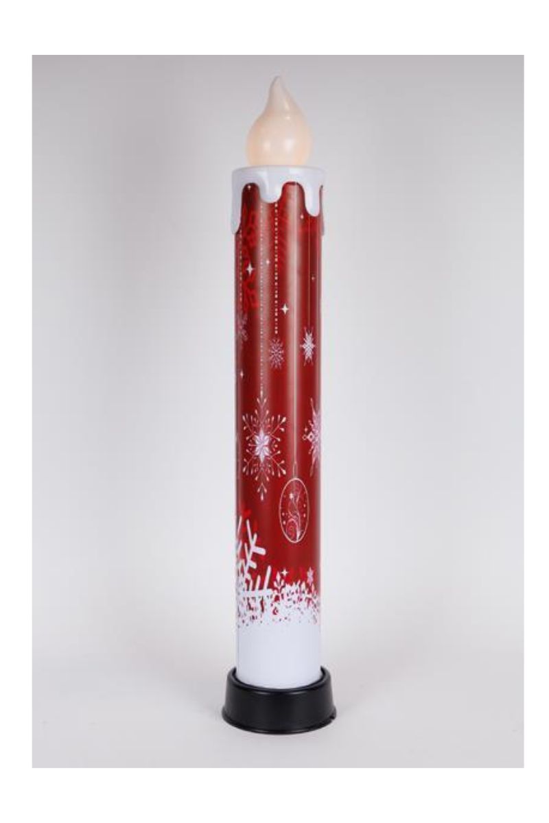 ΚΕΡΙ ΦΩΤΙΖΟΜΕΝΟ 14X82CM, ΚΟΚΚΙΝΟ ME XIΟΝΟΝΙΦΑΔΕΣ, ΜΕ ΚΙΝΗΣΗ ΣΤΗ ΦΛΟΓΑ, ΜΠΑΤΑΡΙΑΣ 3XAA, TIMER, 6 ΘΕΡΜΑ ΛΕΥΚΑ LED, IP44