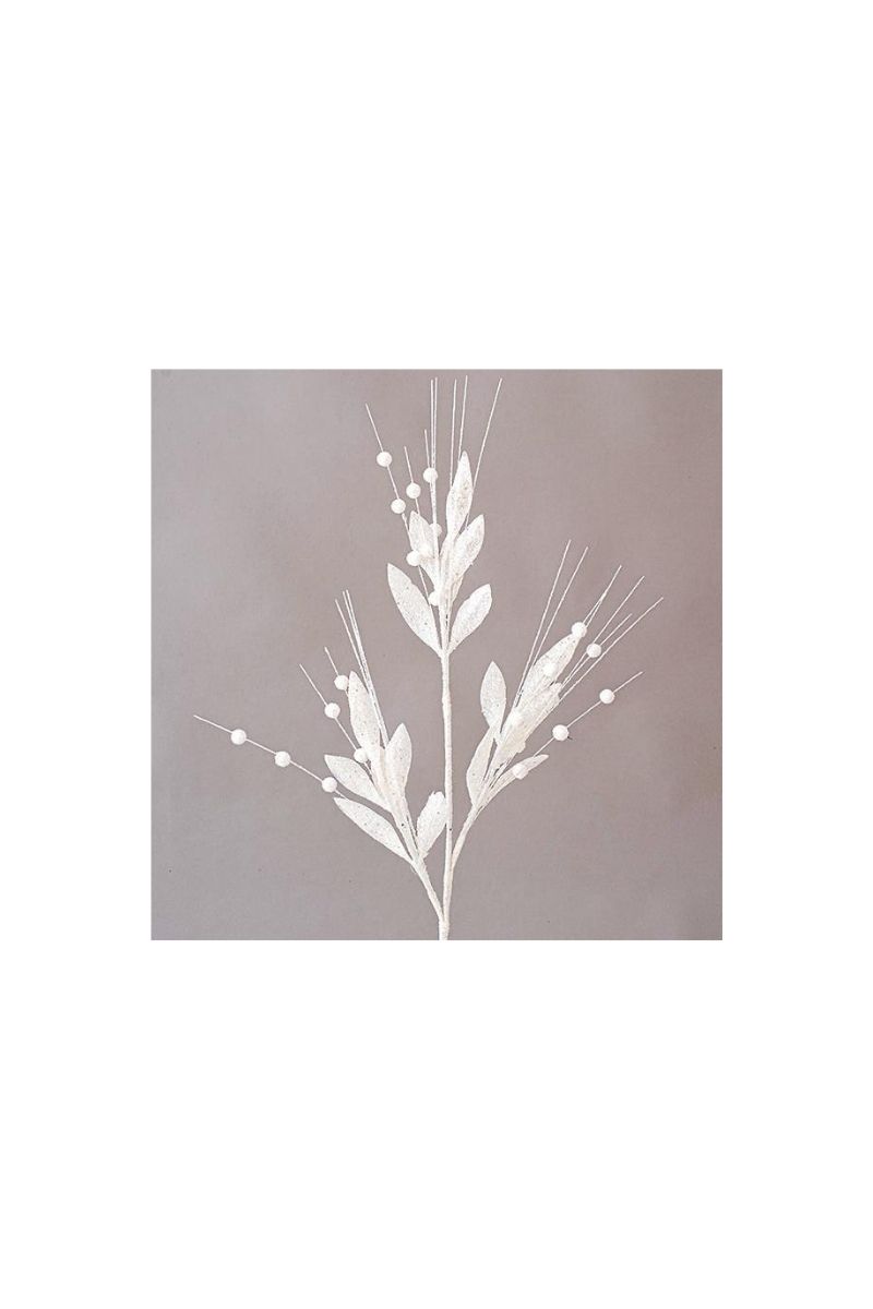 ΚΛΑΔΙ ΜΕ ΦΥΛΛΑ ΚΑΙ ΛΕΥΚΑ ΔΙΑΚΟΣΜΗΤΙΚΑ, ΜΕ GLITTER, 72CM