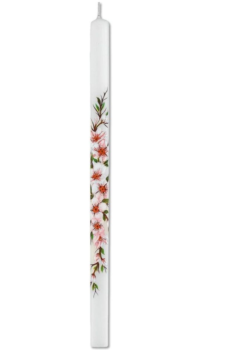 Λαμπάδα Παραφίνης Τετρ. με Ροζ Λουλούδια Διαστ. 32χ1,5χ1,5εκ