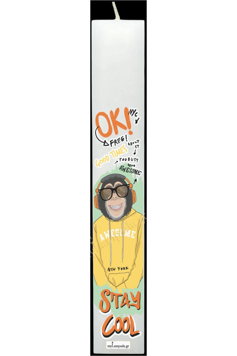 Λαμπάδα Wild Boy Πασχαλινή λαμπάδα χειροποίητη πλακέ 30εκ. με απευθείας εκτύπωση στο κερί