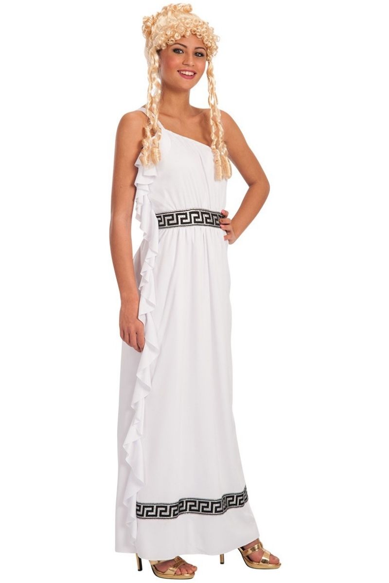Μακρύ λευκό υφασμάτινο φόρεμα με μαιάνδρους ως διακόσμηση στη ζώνηΜ Μέγεθος: ONE SIZE
