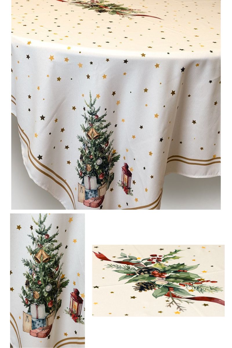 ΤΡΑΠΕΖΟΜΑΝΤΗΛΟ, ΛΕΥΚΟ ΜΕ ΧΡΙΣΤΟΥΓΕΝΝΙΑΤΙΚΟ ΔΕΝΤΡΟ, 140X180CM