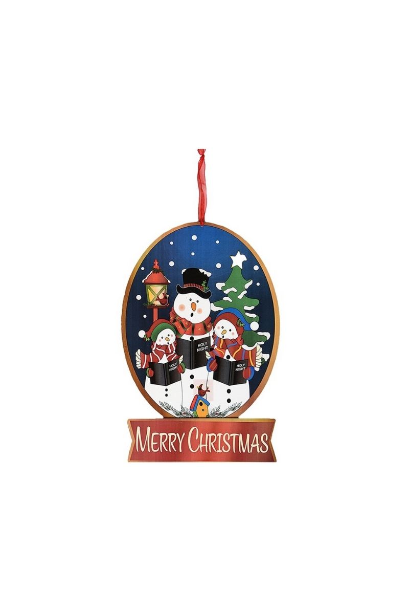 Ξύλινο Κρεμαστό Χριστουγεννιάτικο Διακοσμητικό Χιονάνθρωποι- Γιορτινό Μήνυμα 35εκ.