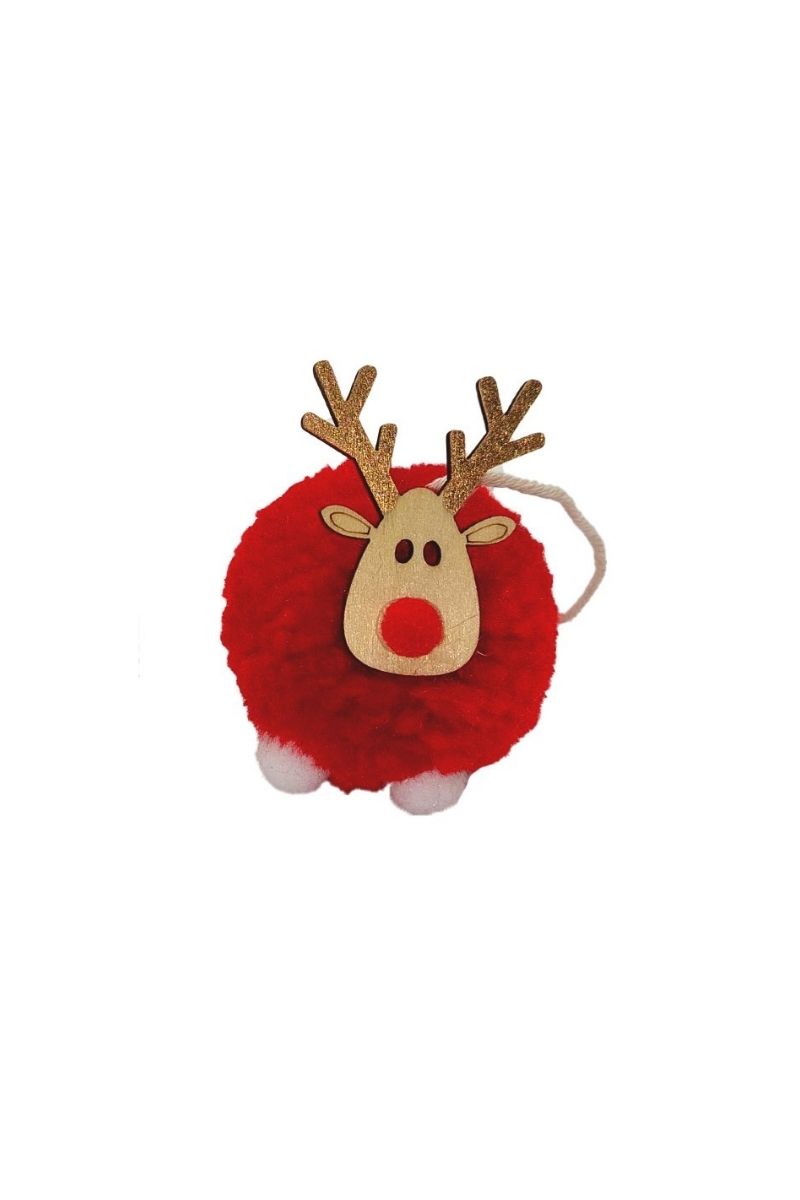 Ξύλινο Στολίδι Ταρανδάκι με PonPon 7εκ.